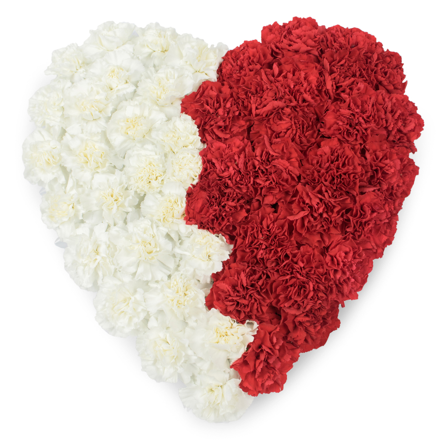 Our romantic red and white carnation heart arrangement is the perfect way to express your feelings. Featuring a blend of pristine white and vibrant red carnations, each flower is hand-selected to ensure exceptional freshness and beauty.