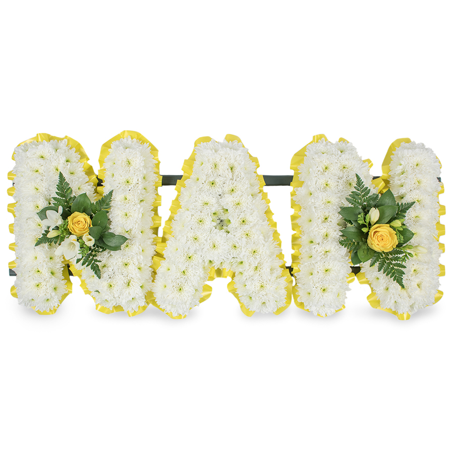 Pay Your Respects with our graceful letter tribute floral arrangement. This elegant bouquet features pure white chrysanthemums, vivid yellow roses, and fragrant white freesia, all beautifully combined with fresh greenery to create a meaningful and unique tribute.